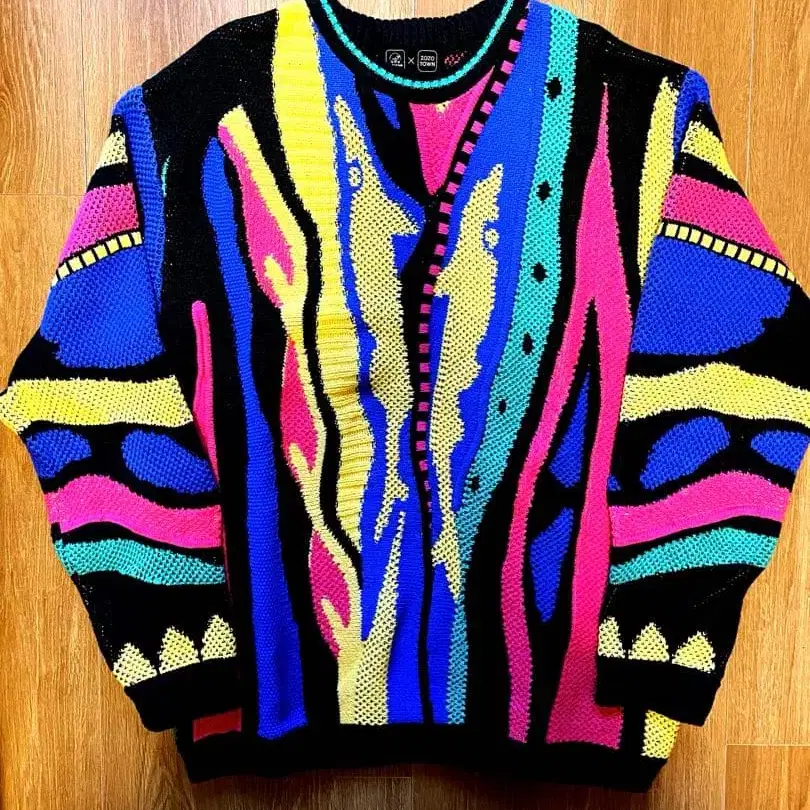 컬러풀한 기하학 패턴의 크루넥 니트. - 디자인: 컬러풀한 기하학 패턴 - 브랜드: ZOZO TOWN x 스프라툰 콜라보 - 스타일: 크루넥 - 색상: 블랙, 파랑, 핑크, 옐로우 컬러, 그린 #ZOZOTOWN #니트스웨터 #스프라툰 #콜라보