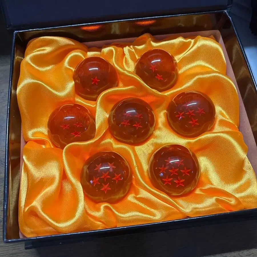 뽑기 게임으로 겟했습니다. 오렌지 컬러의 드래곤볼 7개가 블랙 박스에 수납되어 있습니다. - 세트 내용: 드래곤볼 7개 세트 - 컬러: 오렌지 - 디자인: 별 무늬 포함 - 패키지: 블랙 박스 포함