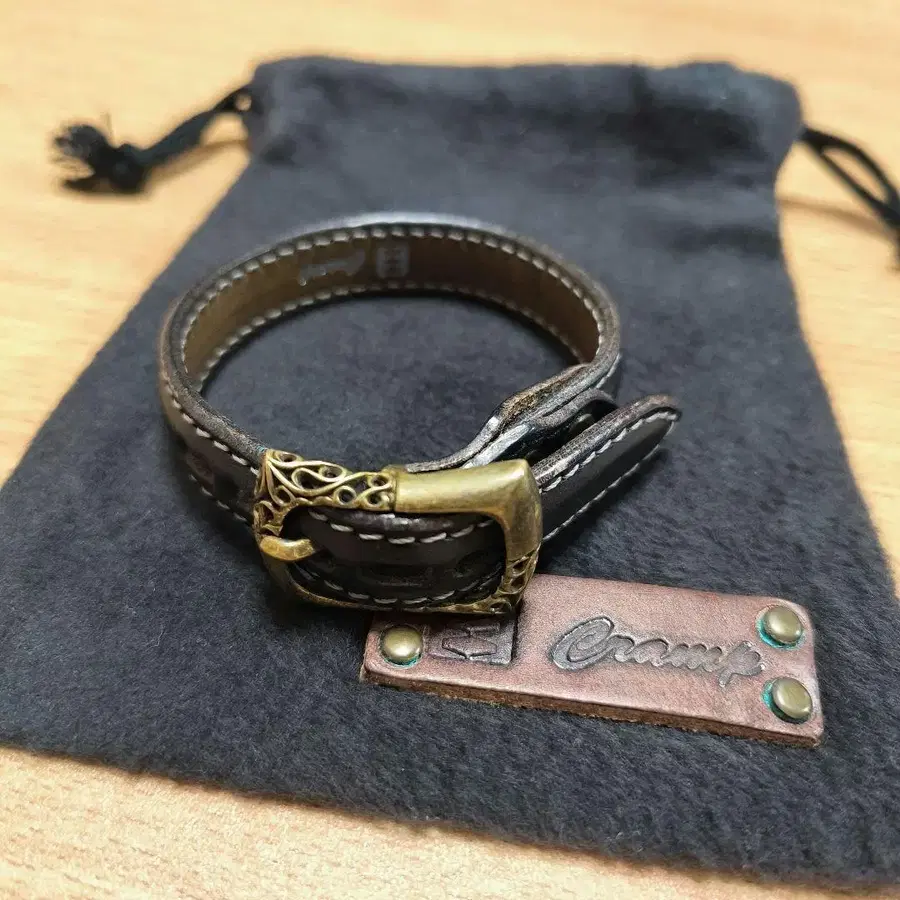 이케노하타 긴카텐 클램프 가죽 팔찌 Y2K 놋쇠 소가죽