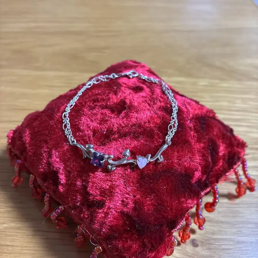 실버 소재, 하트와 보석 장식이 특징인 팔찌. - 소재: 실버 - 디자인: 하트와 보라색 보석 장식 - 잠금 장치: 랍스터 클래스 - 길이: 약 15cm 방문해 주셔서 감사합니다.