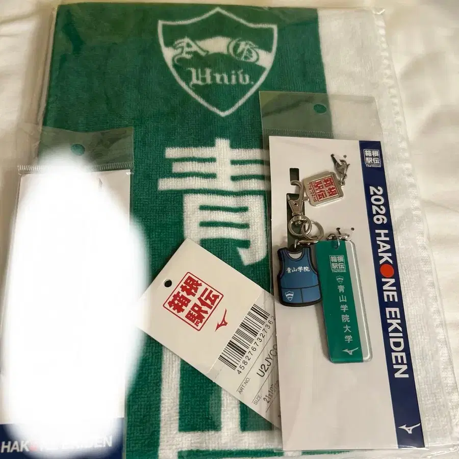 2026년 제102회 대회 하코네 역전 미즈노 오피셜 굿즈 아오야마 학원 대학의 타월과 키링 세트입니다. 미개봉 새상품입니다. 2026 농대 MIZUNO 미즈노 2026 102대회 유니폼 키링