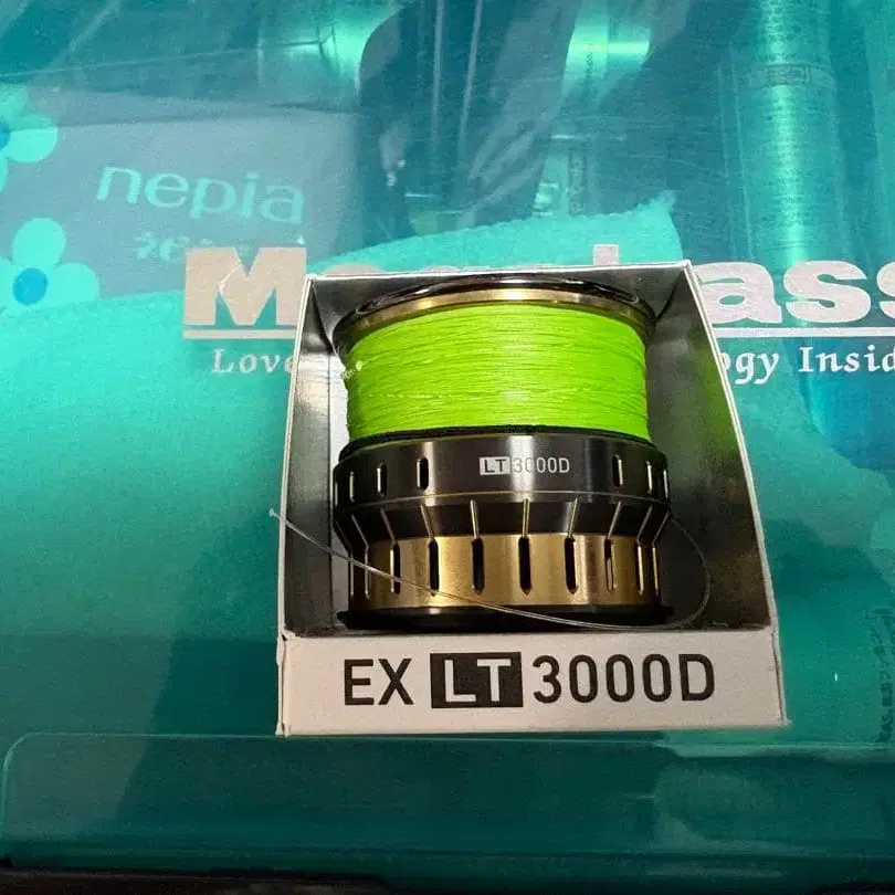 EX LT 3000D 모델 스피닝 릴 부품, 선명한 그린 색상의 라인 포함.
