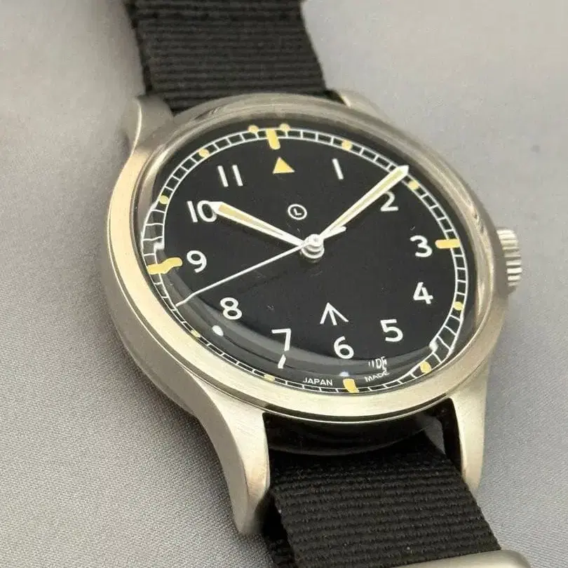 [할인 협상은 삼가해 주십시오] [대행업체는 사절합니다] 상세: 네이벌 워치 NAVAL WATCH 밀리터리 워치 MIL.-06 SV/BK 사이즈: 남성용 소재: SS 페이스 컬러: 블랙 케이스 사이즈: 약 3.8cm(크라운 제외) 케이스 두께: 0.9cm 밴드 사이즈(안쪽 둘레): 최소 약 12cm 최대 약 22cm(정품 밴드 정품 비죠) 밴드 최대 폭: 약 1.8cm 밴드 컬러: 블랙(NATO 타입) 제조사 규격에 따른 평균 일차: +45초 ~ -35초(5℃ ~ 35℃에서) 중량: 59g(밴드 포함) 구동: 자동 와인딩(일본제) 정가: 35200엔(제조사 공식 사이트 참조) 부속품: 상자 비고: 영국 육군 'W10' 사양을 베이스로 당시의 스펙을 충실히 재현한 [ MIL.-06 SV/BK ]. 세이코제(일본)의 칼리버 NH35 자동 와인딩 무브먼트를 채용하여, 최대 태엽 감김 시 약 41시간의 구동이 가능합니다. 플라스틱 방풍에 눈에 띄지 않을 정도의 스리키즈가 있지만, 정상적으로 작동하고 있습니다. 다이얼 컬러 - 블랙 벨트 컬러 - 블랙 동작 - 양호