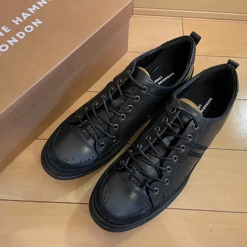 캐서린 햄넷의 블랙 가죽 스니커즈입니다. 미사용 새상품 사이즈 - 27cm 간편 포장으로 발송합니다. 까스텔바작