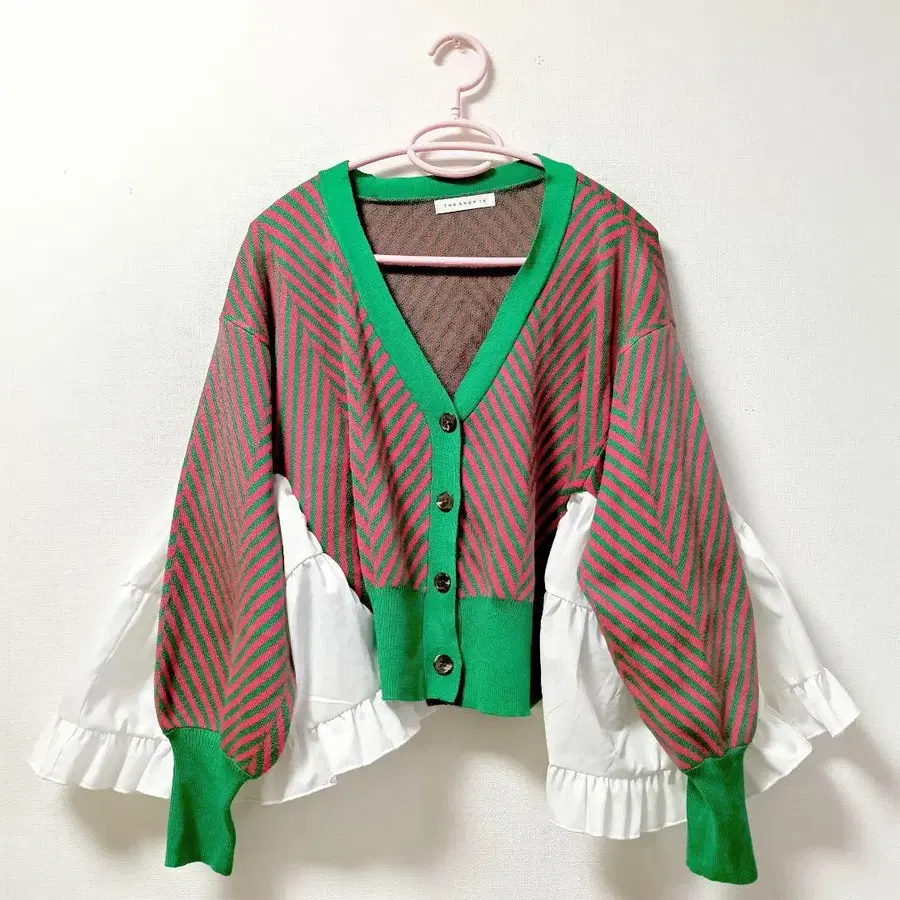 핑크와 그린 스트라이프 디자인에 프릴 소매가 특징인 가디건. - 색상: 핑크와 그린 스트라이프 - 디자인: 프릴이 달린 소매 - 스타일: 가디건 - 버튼: 앞면에 버튼 있음 방문해 주셔서 감사합니다. #구제 의류 #리메이크 #구제 의류 리메이크 #리메이크 구제 의류 #aiko 등을 좋아하시는 분께