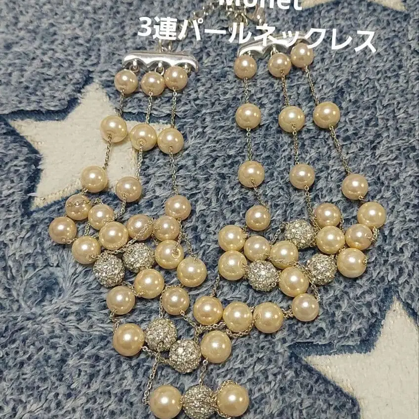 중고입니다. 안쪽 둘레는 약 38cm입니다. Monet 3연 펄 목걸이