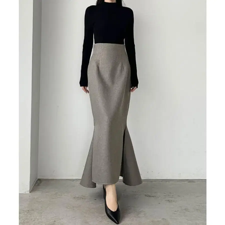 미임 셀렉 하이웨스트 백 슬릿 롱 머메이드 스커트