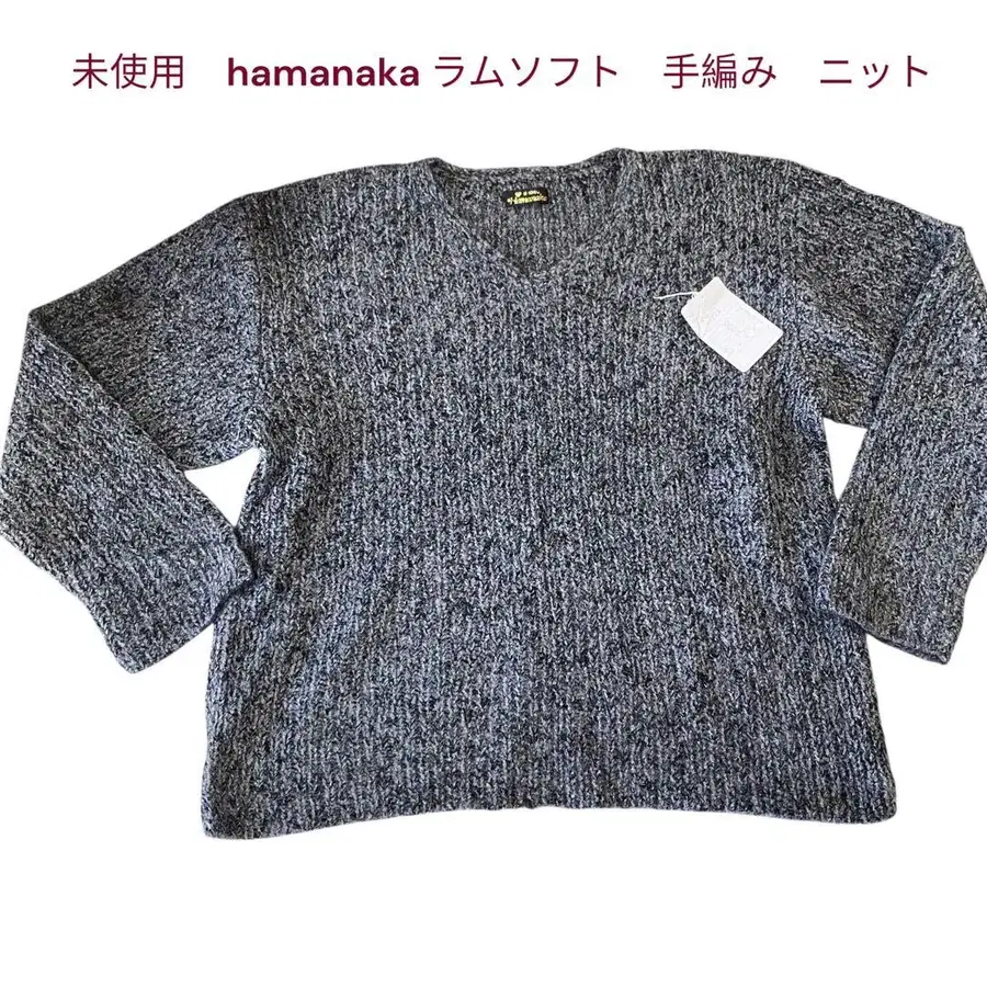 미사용 하마나카 손뜨개질 니트 스웨터 램 소프트 남성용 F