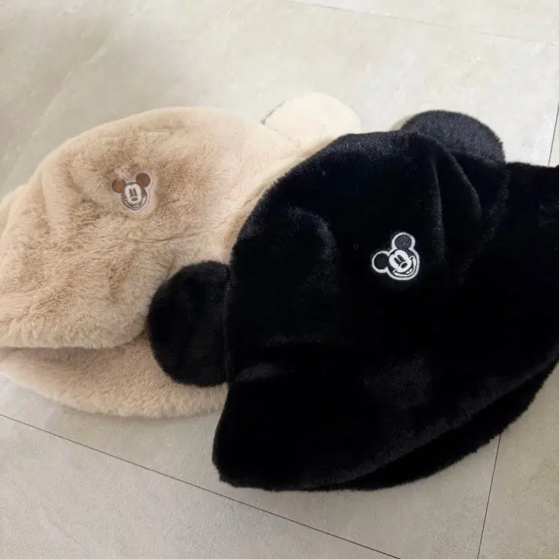 • 미키마우스 귀 달린 퍼 모자