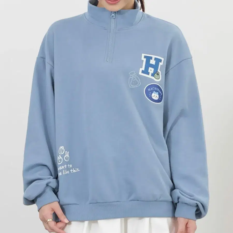 상의 맨투맨 긴팔 트레이닝복 치이카와 (먼작귀) 캐릭터 하프 지퍼 면 혼방 뒷면 와펜 여성용 Honeys 허니즈 치이카와 (먼작귀) 하치와레 / 지퍼 상의