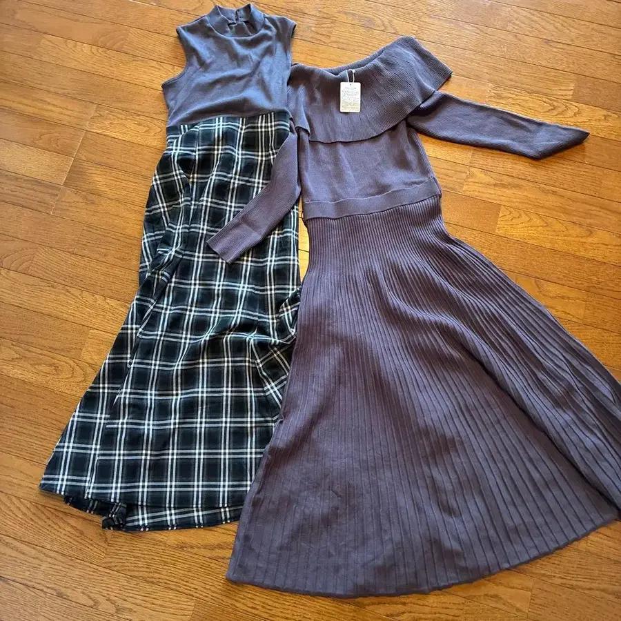 시착만 한! 데콜테 오픈 플레어 니트 원피스