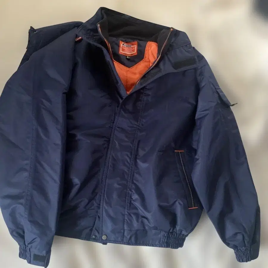 회사명 자수를 뗀 흔적이 있지만, 시착만 한 상품입니다. L 사이즈, 외부 포켓 부착. 방한복 점퍼 모자 탈부착 가능 - 브랜드: XEBEC - 사이즈: L - 특징: 멀티 기능 디자인 - 포켓: 외부 포켓 부착 방문해 주셔서 감사합니다. 사이즈 - L