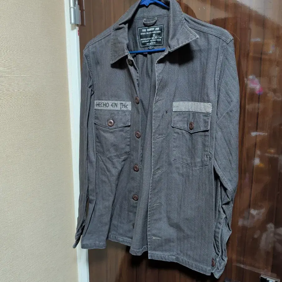 HECHO EN THE 자수가 들어간 L 사이즈 그레이 밀리터리 자켓. - 브랜드: THE HIGHEST END - 사이즈: L - 디자인: HECHO EN THE 자수 - 스타일: 밀리터리 자켓 - 색상: 그레이 방문해 주셔서 감사합니다.