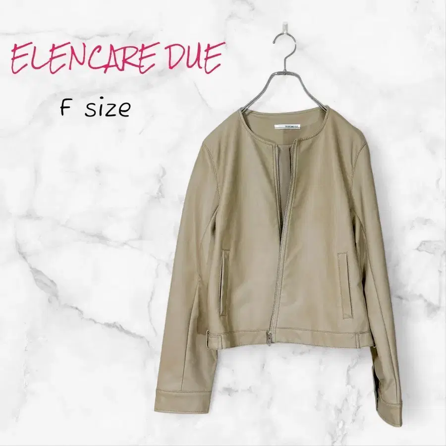 ELENCARE DUE 합성 피혁 노카라 지퍼 자켓 F 베이지