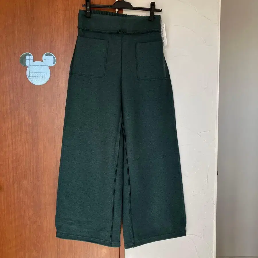 다크 그린 와이드 팬츠, 허리밴딩으로 쾌적한 착용감. - 색상: 다크 그린 - 스타일: 와이드 팬츠 - 포켓: 앞 포켓 있음 - 허리: 허리밴딩 인심 70 허리 35cm 방문해 주셔서 감사합니다. 사이즈 - M