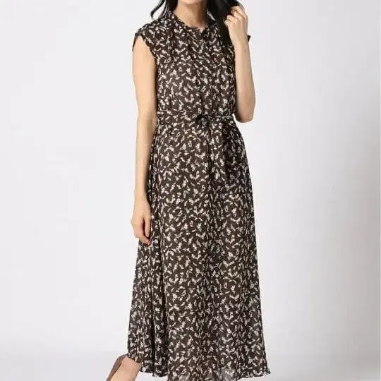 자동 번역되었어요. 원문보기플라워 프린트의 브라운 색상 롱 원피스, 폴리에스테르 100% 소재로 쾌적한 착용감.