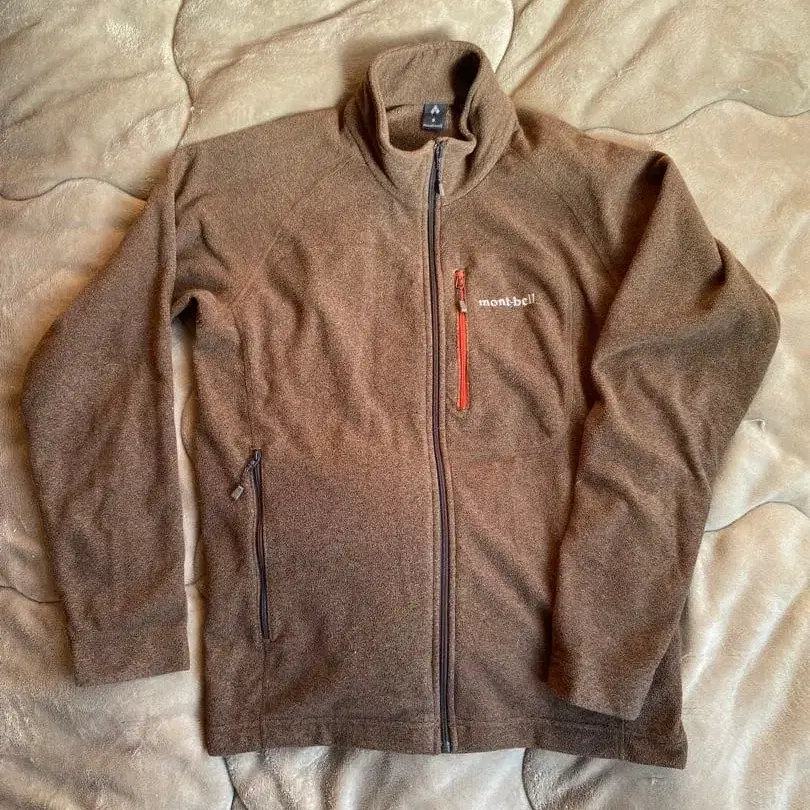 몽벨 고품질 플리스 소재 브라운 풀 집업 자켓, 사이드 지퍼 포켓 부착.