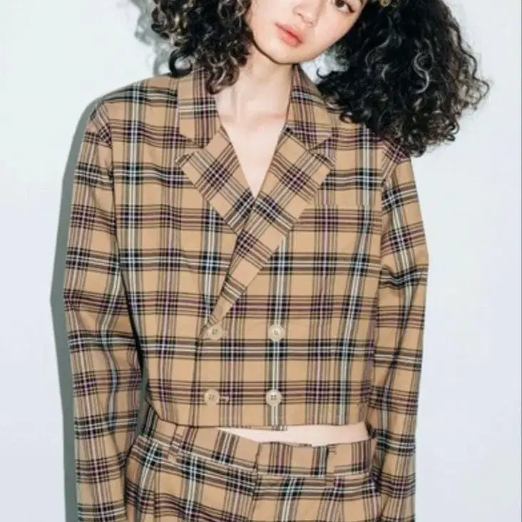 emi 체크 무늬 더블 브레스트 자켓 M