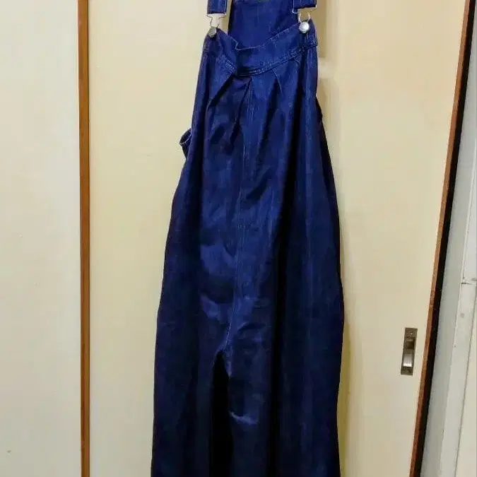 데님 소재의 흔치 않은 배기 타입 살로펫입니다.