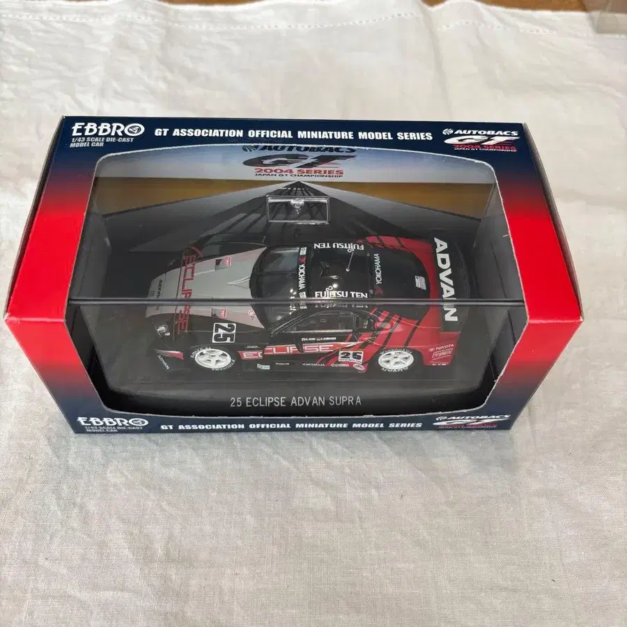 레이스 사양의 25 ECLIPSE ADVAN SUPRA, 1/43 스케일의 정밀 모델. - 모델명: 25 ECLIPSE ADVAN SUPRA - 브랜드: EBBRO - 스케일: 1/43 - 패키지: 오리지널 박스 포함 - 색상: 블랙/레드/실버 - 특징: 레이스 사양 디자인 사진으로 현품을 확인하시고 검토해 주세요. 방문해 주셔서 감사합니다.