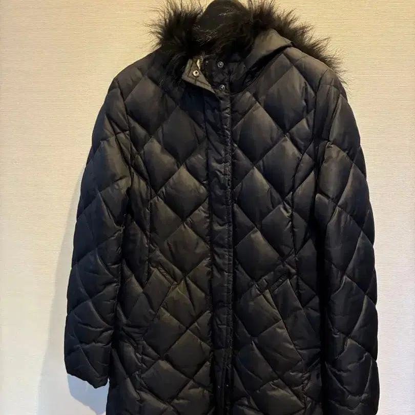 퀼팅 디자인의 퍼(fur)가 달린 다운 자켓, 사이즈 40, 블랙. 포켓 부분에 올풀림이 있습니다. 사진을 확인해 주세요. - 색상: 블랙 - 디자인: 퀼팅 - 후드: 퍼(fur) 포함 후드 - 사이즈: 40 방문해 주셔서 감사합니다.