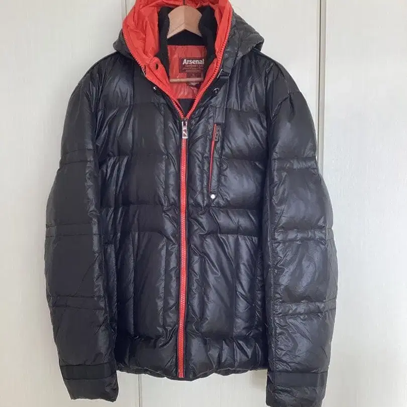 다운 소재의 블랙과 오렌지 콤비네이션 자켓, 아스날 로고 포함 중국산 왼쪽 포켓의 지퍼에 흠집 있음. 사진 6번째 참고. - 색상: 블랙/오렌지 - 후드: 있음 - 포켓: 지퍼 포켓 있음 - 소재: 다운 소재 기장: 70cm 어깨 너비: 50cm 기장: 60cm 소매 길이: 65cm 압축하여 발송하므로, 양해 부탁드립니다. 방문해 주셔서 감사합니다.