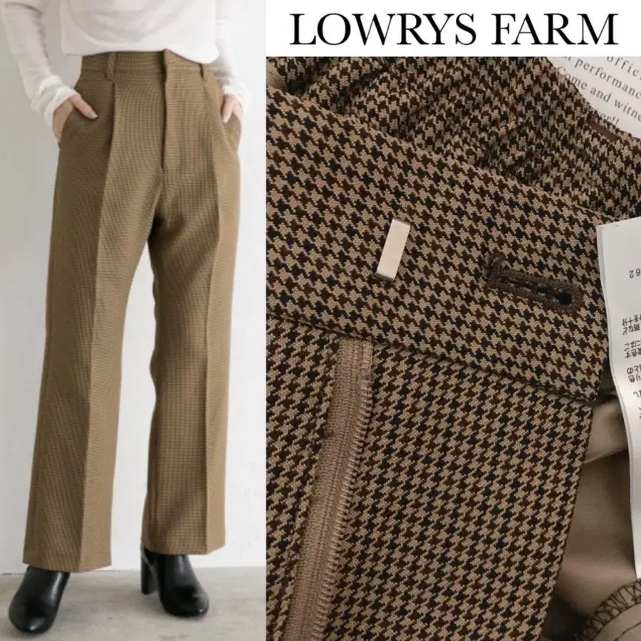 허리밴딩, 앞 지퍼, 벨트 루프, 포켓 있음, 센터 프레스, 하운드투스 체크 패턴, 체크 무늬