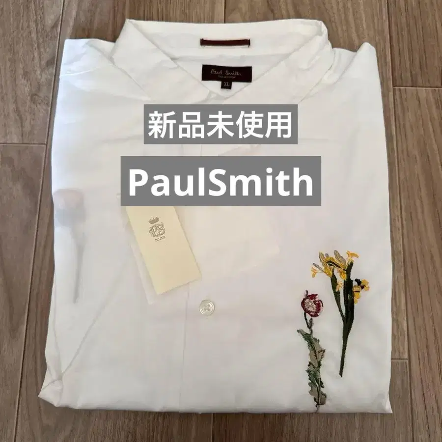 화이트 색상의 긴팔 셔츠, Paul Smith의 자수 디자인.