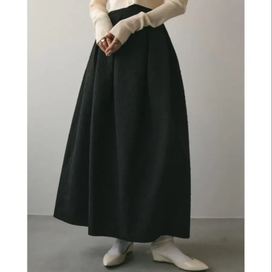 새상품급 eL 벌룬 롱 스커트 플레어 롱 기장 뒷밴딩 블랙
