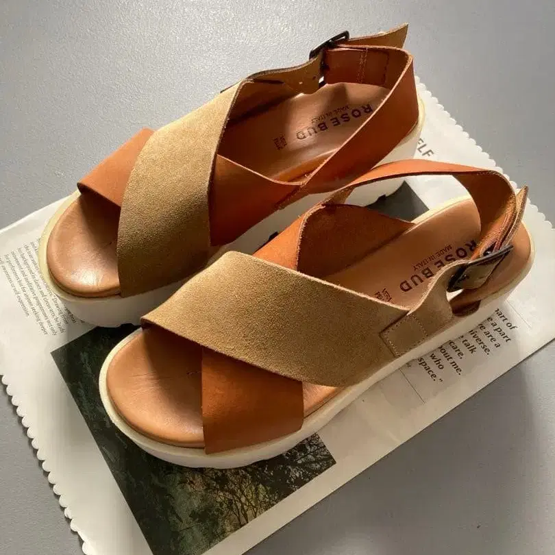ROSE BUD 로즈버드 통굽 크로스 스트랩 샌들 브라운 이탈리아제