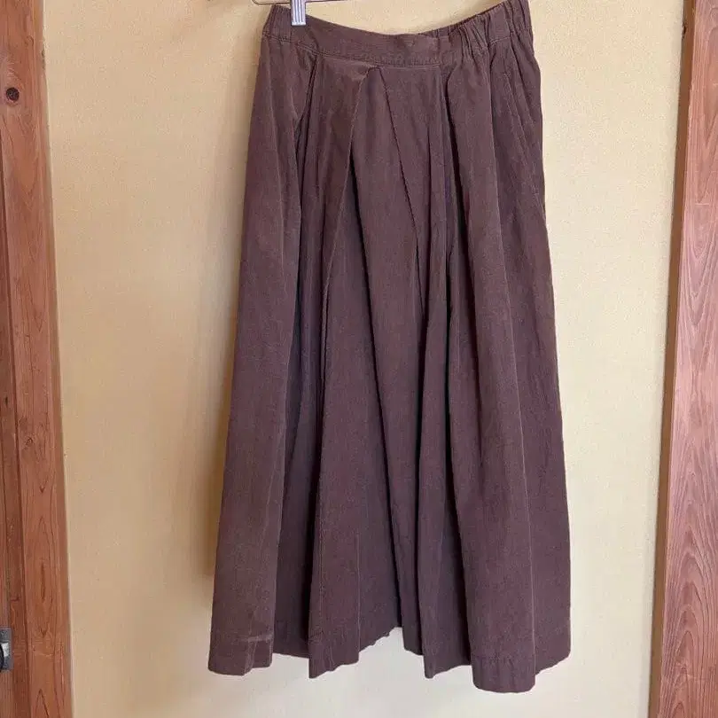 롱 스커트 M 사이즈 브라운 허리 전체 밴딩 일본제