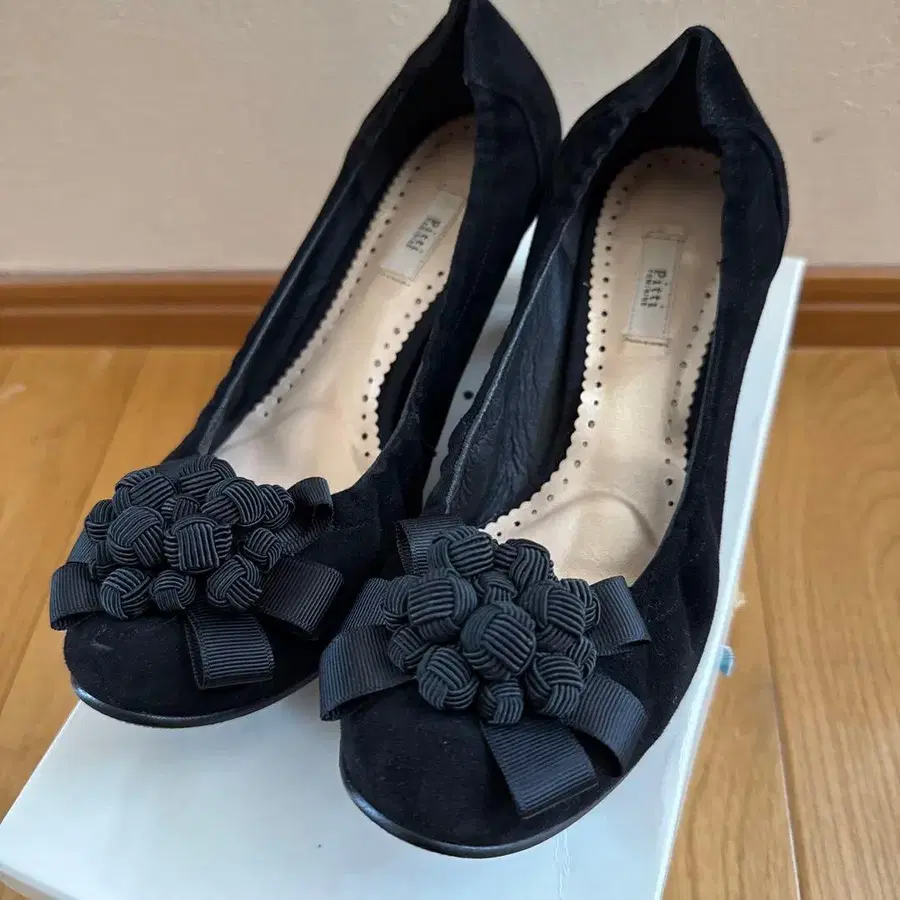 pitti 코사지 펌프스 스웨이드 블랙 23.5cm