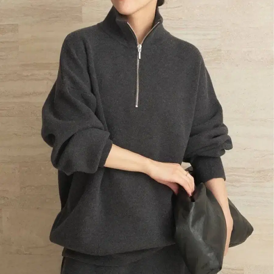 하프 지퍼 타입으로, 지퍼를 잠가 스탠드 넥으로 하거나 열어서 옷깃을 내리는 등 어레인지가 가능합니다.