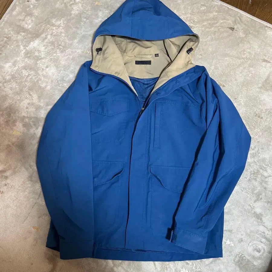 파란색 나일론 마운틴 후드티 L 사이즈