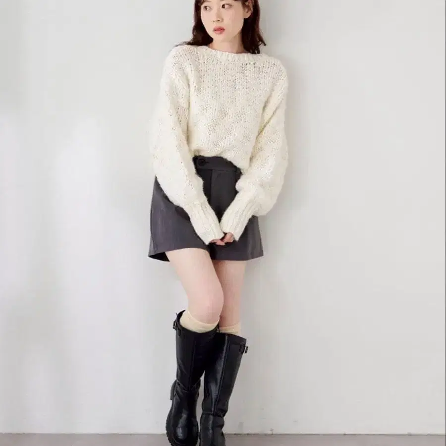 굵기가 일정하지 않은 슬라브사를 사용하여, 포근하고 부드럽게 완성한 큼직한 니트입니다.