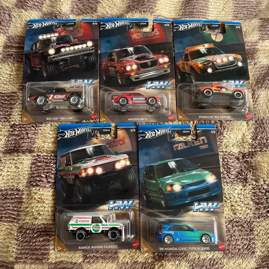 다양한 모델이 갖춰진 핫휠 미니카 세트. - 모델명: Mazda RX-7 - 모델명: Porsche 911 Safari - 모델명: Range Rover Classic - 모델명: 1999 Honda Civic Type R (EK9) - 모델명: El Camino - 모델명: Mazda RX-3 방문해 주셔서 감사합니다.