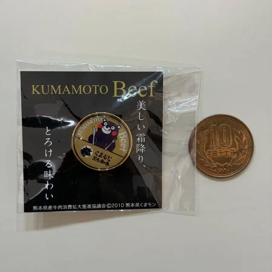 KUMAMOTO Beef의 로고가 특징인 쿠마몬 핀 배지. - 디자인: KUMAMOTO Beef 로고 포함 - 캐릭터: 쿠마몬 방문해 주셔서 감사합니다. 아이템/종류 - 핀 배지