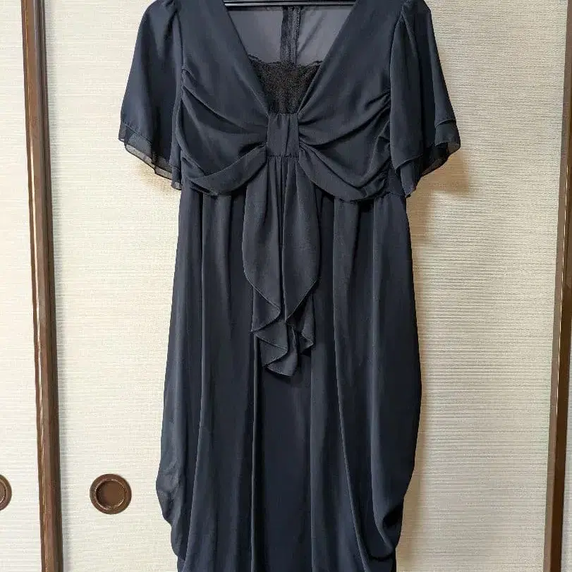 피아노 발표회에서 1회 착용한 원피스입니다. 네이비 컬러로 고급스러운 디자인이며, 가슴 부분의 드레이프와 밑단의 실루엣이 화려합니다. 발표회, 결혼식, 경사 등 포멀한 장면에 추천합니다. 사이즈: 11호 (M 사이즈) 착용: 1회만 상태: 새상품급 즉시 구매 OK입니다. 정성껏 포장하여 발송합니다. *** 리본 포함 프론트 디자인이 특징인 블랙 무릎 기장 원피스. - 색상: 블랙 - 소매 길이: 반팔 - 디자인: 리본 포함 프론트 디자인 - 백 디자인: 허리밴딩 개더 - 스타일: 무릎 기장 방문해 주셔서 감사합니다.