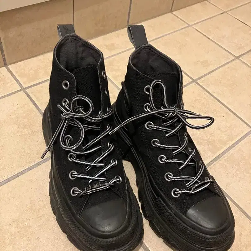 베이지/블랙 하이컷 통굽 스니커즈 22.5cm 키다리 아저씨