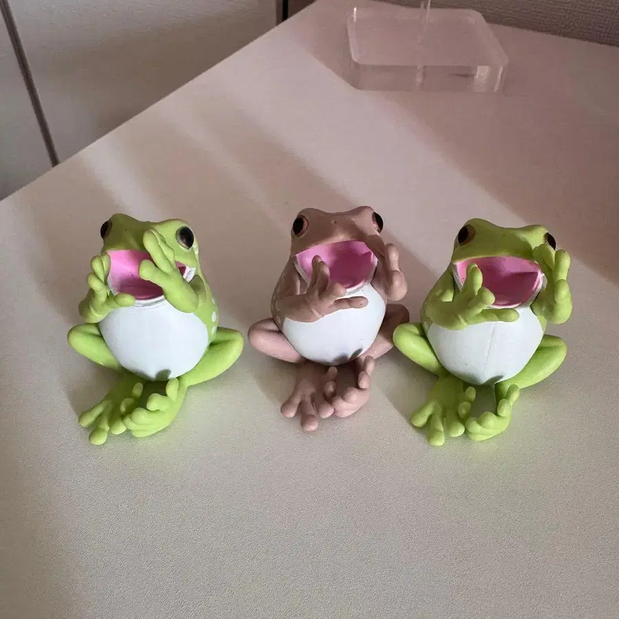 컬러풀한 개구리 피규어 3개 세트. - 색상: 그린, 핑크, 브라운 - 디자인: 개구리 피규어 - 수량: 3개 세트 - 소재: 플라스틱 방문해 주셔서 감사합니다.