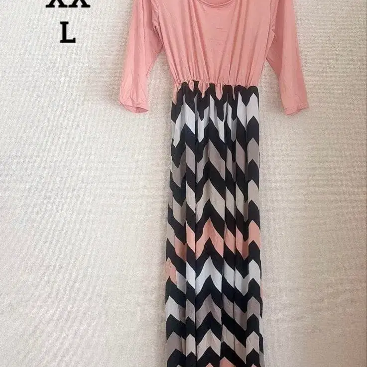 자동 번역되었어요. 원문보기핑크 탑과 스트라이프 스커트가 특징인 맥시 원피스.