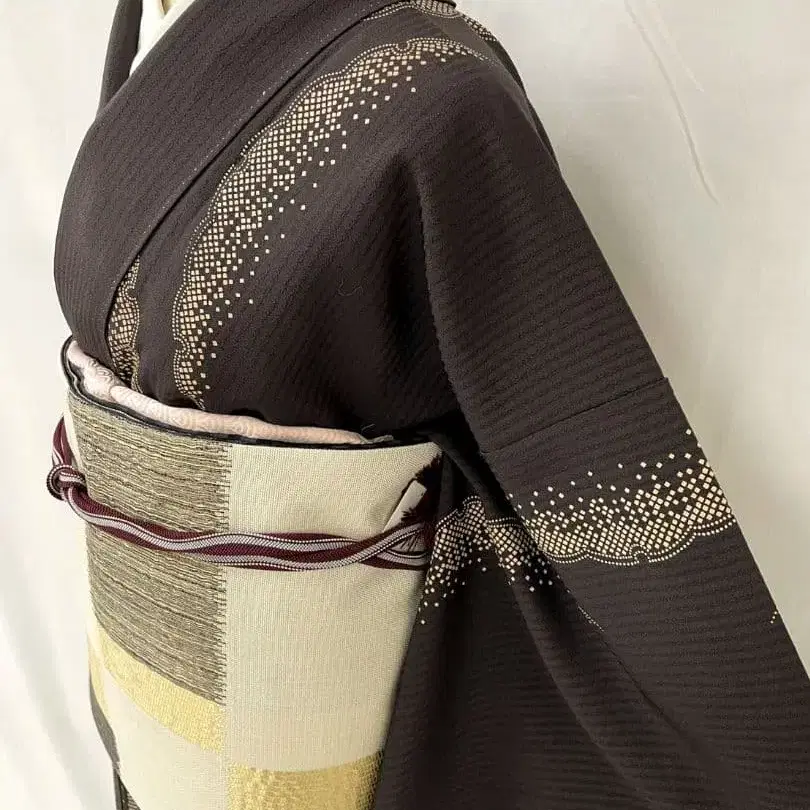 1070 화 후쿠로 오비 순수 실크 격자 금 새