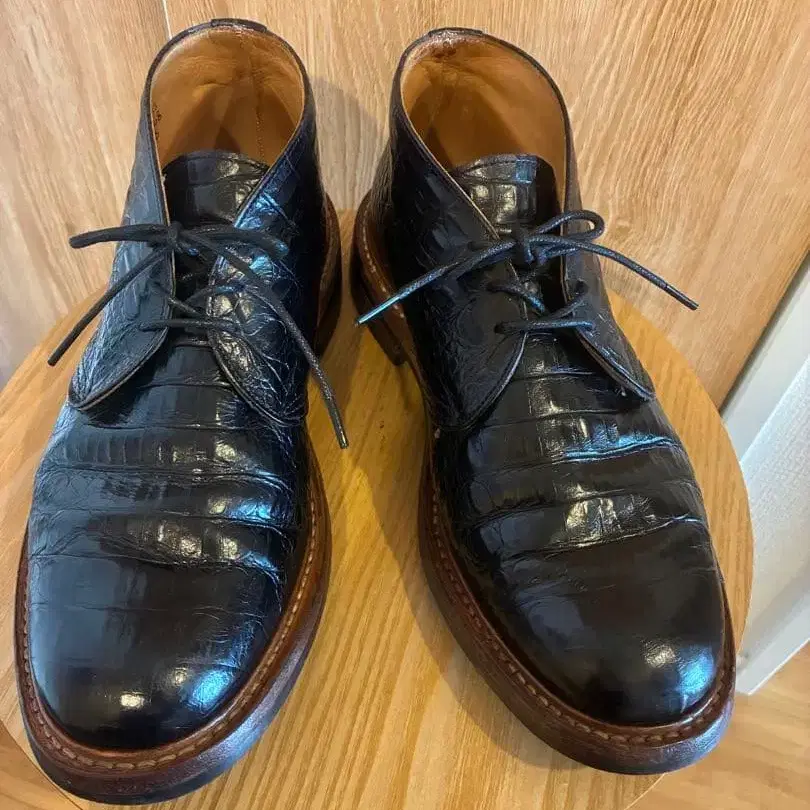 트리커스의 처카 부츠입니다. 악어 엠보싱으로 독특한 에이징을 즐길 수 있는 한 켤레라고 생각합니다. 매끄러운 가죽 등에 질린 분들에게는 어떨까요? 사이즈는 8-5입니다. 기본적으로 노클레임/노리턴으로 부탁드립니다.