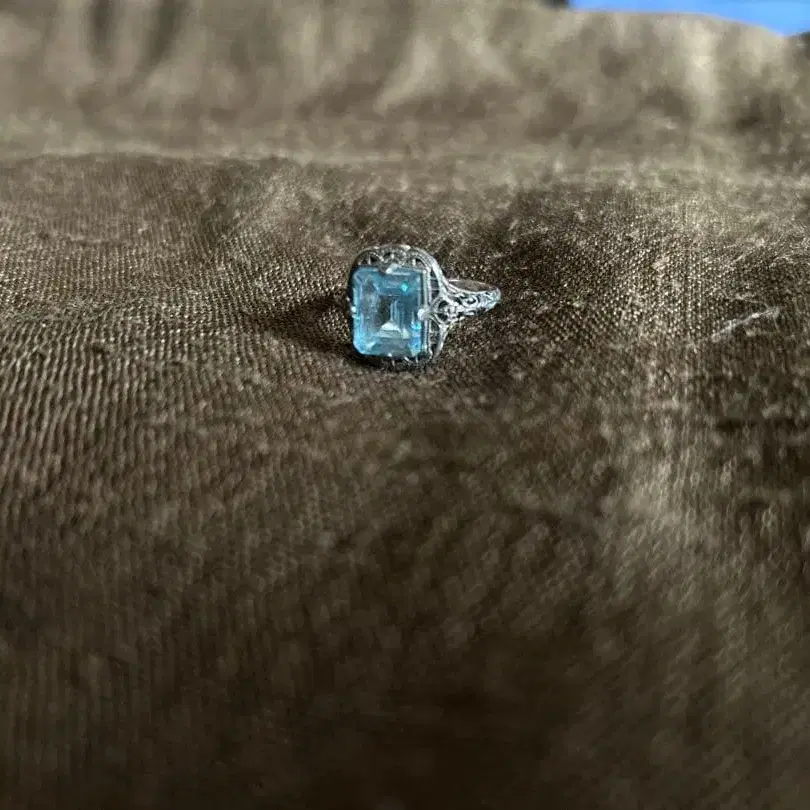 스카이블루 에메랄드 컷 반지