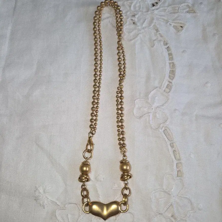 하트형 참 포함 골드 컬러 메탈 목걸이 - 디자인: 하트형 참과 비즈가 특징입니다. - 소재: 골드 컬러 메탈 소재. - 체인 스타일: 볼 체인 스타일. 방문해 주셔서 감사합니다.