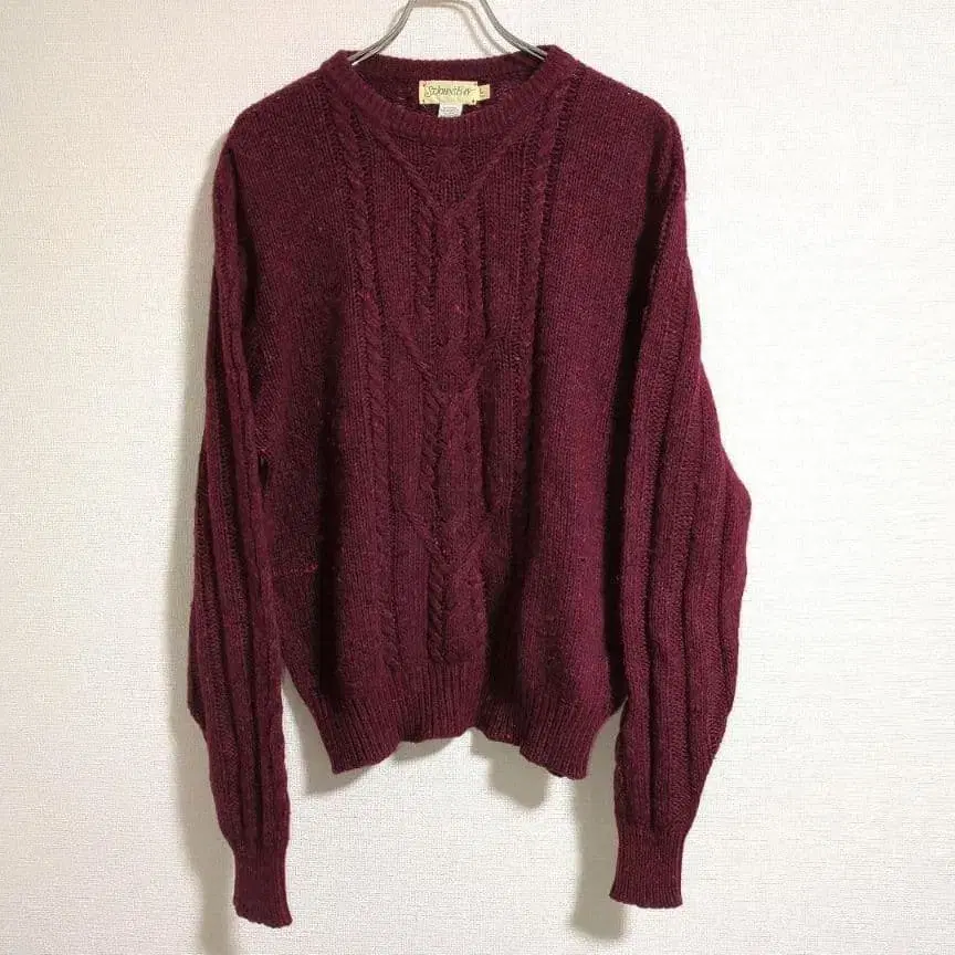 ST.JOHNS BAY (세인트 존스 베이) 90년대 빈티지 케이블 니트입니다. 메이드 인 USA 색상 - 버건디 (와인 레드) 디자인 - 크루넥, 케이블 짜임 소재 - 울 50%, 아크릴 50% 사이즈 - L 어깨 너비 - 47.5cm 가슴 너비 - 57cm 소매 길이 - 70cm 기장 - 63cm 상태 약간의 사용감은 있지만, 구제 의류로서는 비교적 새상품급입니다. ※ 구제 의류라는 점을 이해하신 후 구매해 주세요. ※ 컴팩트하게 접어서 보내드립니다. 접은 자국 등이 생길 수 있으니 양해 부탁드립니다. 색상 - 레드 계열 넥 - 크루넥