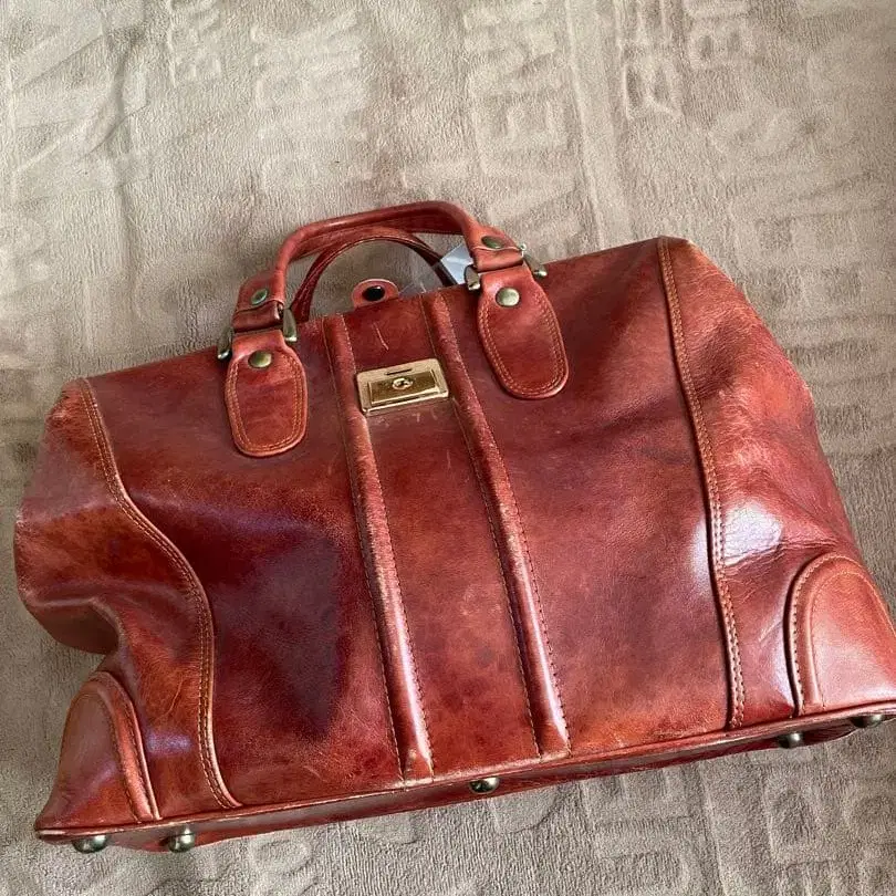 고품질 브라운 가죽 보스턴 백, 내부에 지퍼 포켓 부착. 빈티지 백 천연 가죽 사이즈 세로 30 가로 39 깊이 20 ※ 개인이 측정한 치수 2년 전 미국에서 구매했습니다. 경년 변화도 즐길 수 있는 멋스러운 제품입니다. 마지막 사진처럼 검은 얼룩이 있지만 사용에는 문제가 없습니다. 저는 사용하지 않았지만 열쇠도 있어 그것도 부속물로 드립니다. - 색상: 브라운 - 소재: 가죽 - 디자인: 핸드백 스타일 - 바닥 부분: 금속제 발 - 내부 포켓: 지퍼 포켓 방문해 주셔서 감사합니다.