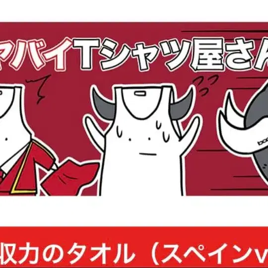 야바이 T셔츠상의 캐릭터가 그려진 빨간색 흡수성 타월 (스페인 버전).