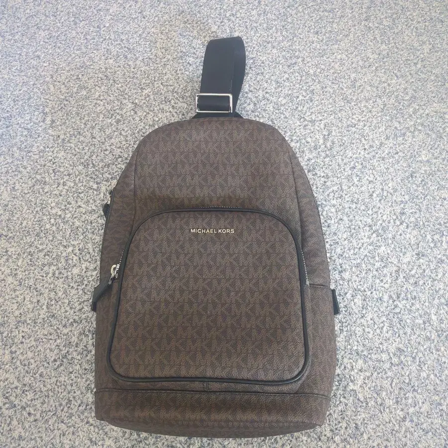 MICHAEL KORS의 브라운 시그니처 MK 바디 백. 조정 가능한 숄더 스트랩과 프론트 포켓이 있어 스타일리시하면서도 실용적입니다.