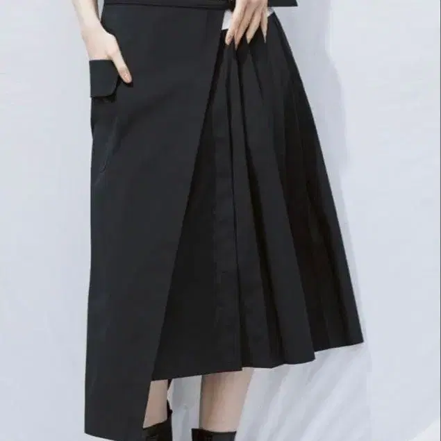 왼쪽 절반은 플리츠 스커트이며, 좌우 길이가 다른 비대칭 디자인입니다. 사이즈 36 겉감 폴리에스테르 100%